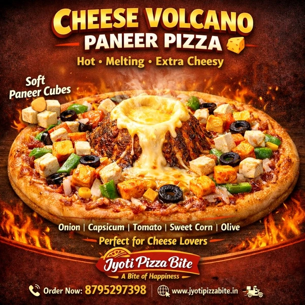 Prepare your taste buds for a flavor-packed experience with the Cheese Volcano Paneer Pizza, a mouthwatering creation from JYOTI PIZZA BITE. This pizza is designed to delight food lovers who crave rich, indulgent flavors and the perfect combination of cheesy goodness and soft paneer. Whether you're a pizza enthusiast or simply looking for a delicious treat, this pizza is sure to leave you craving more!